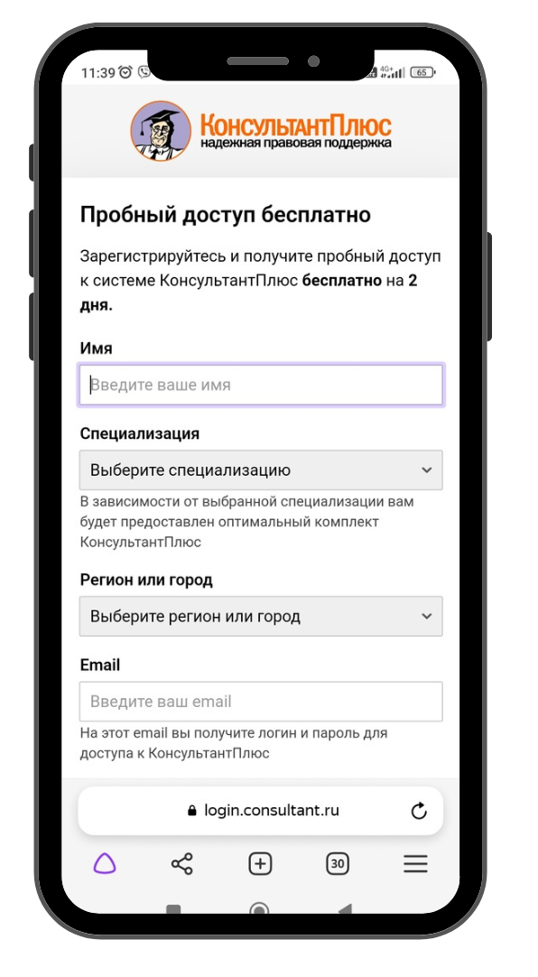 Предлагаем бесплатно получить пробный доступ к системе КонсультантПлюс, который позволит получить полное представление обо всех возможностях системы.